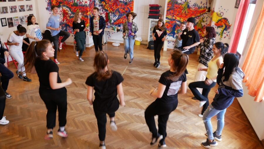 Sâmbătă, 30 aprilie 2022, ne-am întâlnit din nou la Palatul Universul pentru a mai descoperi câte ceva despre noi înșine prin dans, teatru și educație non-formală. Totodată, psihologul proiectului, Vladimir Enăchescu, a fost prezent alături de noi. A discutat cu beneficiarii, a formulat întrebări și răspunsuri, i-a ajutat să înțeleagă ceva mai multe despre ei înșiși.