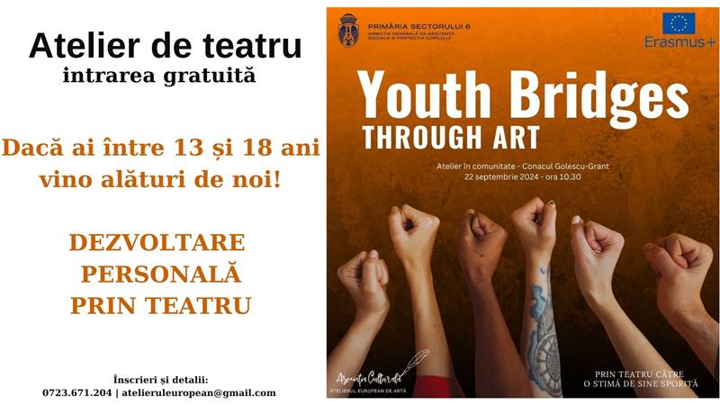 Youth Bridges Through Art este un proiect Erasmus+ (in parteneriat cu DGASPC S6) despre care puteti afla mai multe aici.