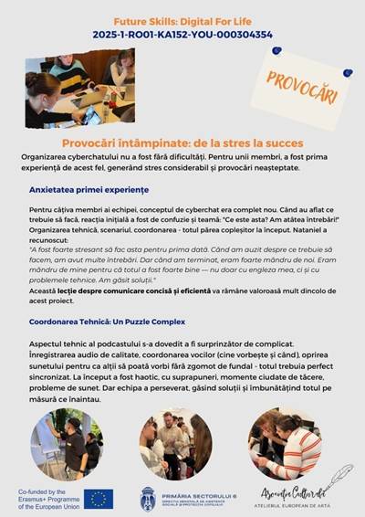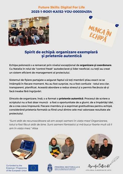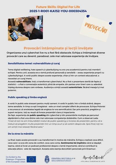 Broșura documentează metodologia lor de pregătire structurată (mind mapping, timeline, scenariu), provocările întâmpinate în abordarea acestei teme sensibile și competențele dobândite – de la empatie și comunicare eficientă până la organizare și leadership. Echipa poloneză s-a remarcat prin spiritul de echipă excepțional și capacitatea de a transforma o experiență stresantă într-o lecție valoroasă despre wellbeing digital.