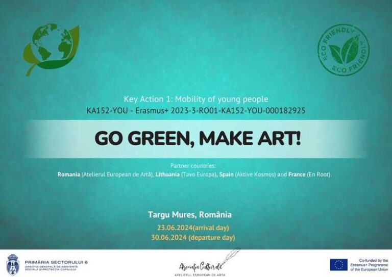 Proiect Erasmus+ care combină arta și conștientizarea ecologică, dezvoltând competențele creative ale tinerilor prin metode artistice pentru protecția mediului.